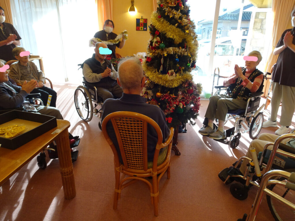 飾りつけが終わったツリーを囲んで皆さんとクリスマスの歌をうたい、気持ちはすっかりクリスマス気分です。