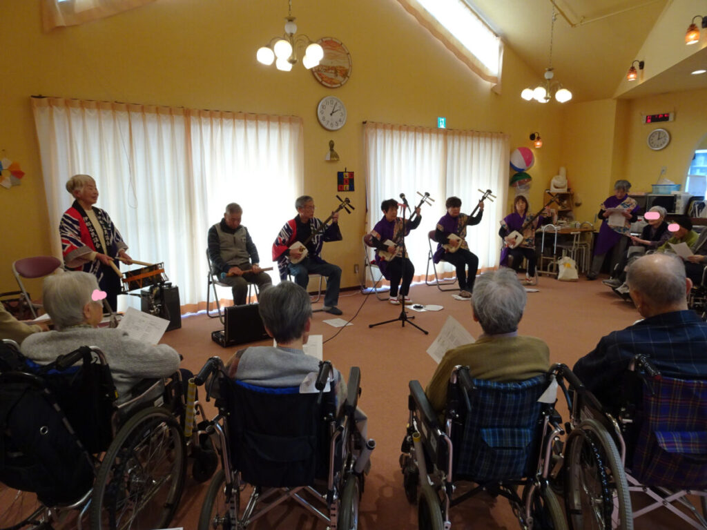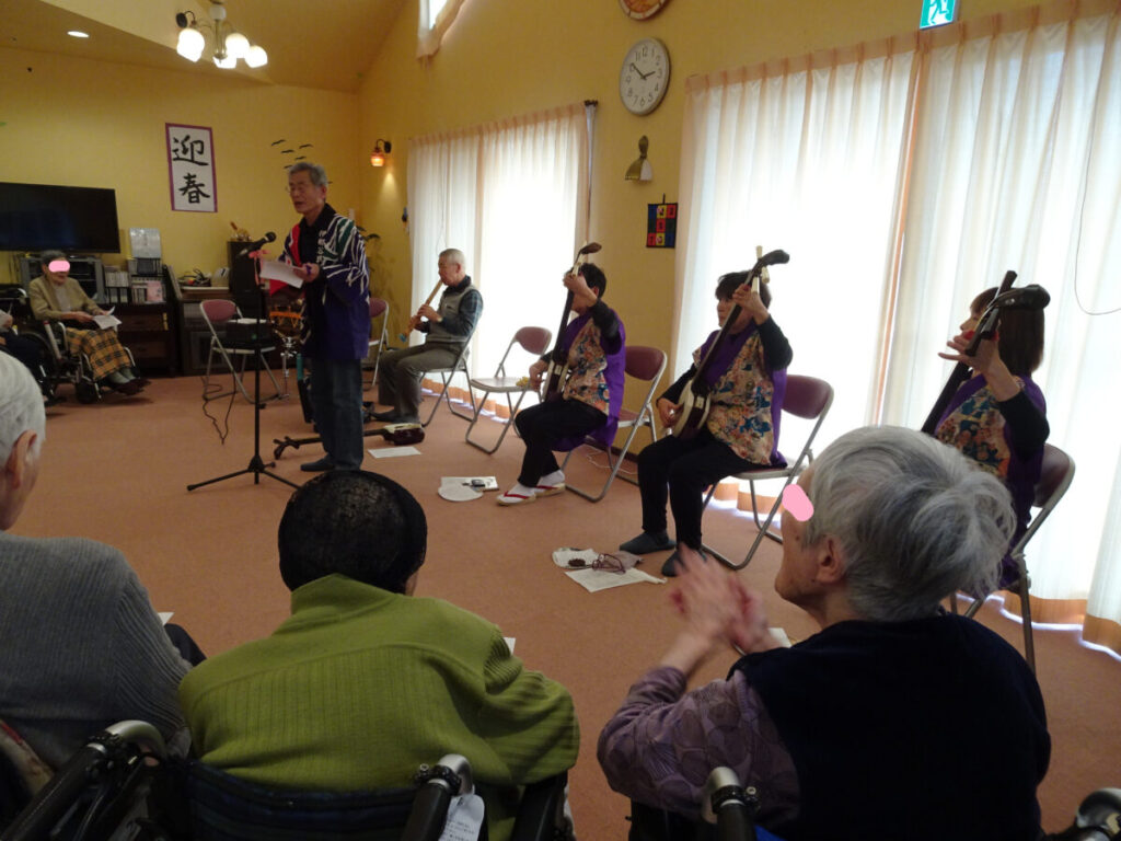 ボランティアさんが来てくださり、津軽三味線、尺八を演奏してくださいました。